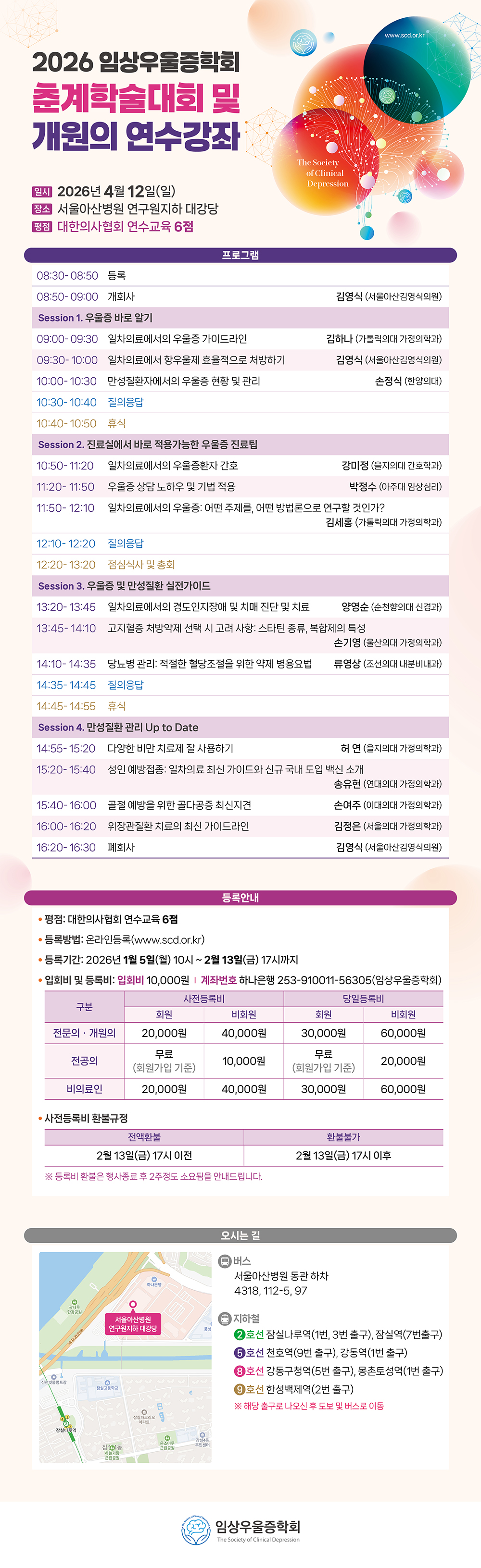 2026년 임상우울증학회 춘계학술대회 및 연수강좌 프로그램