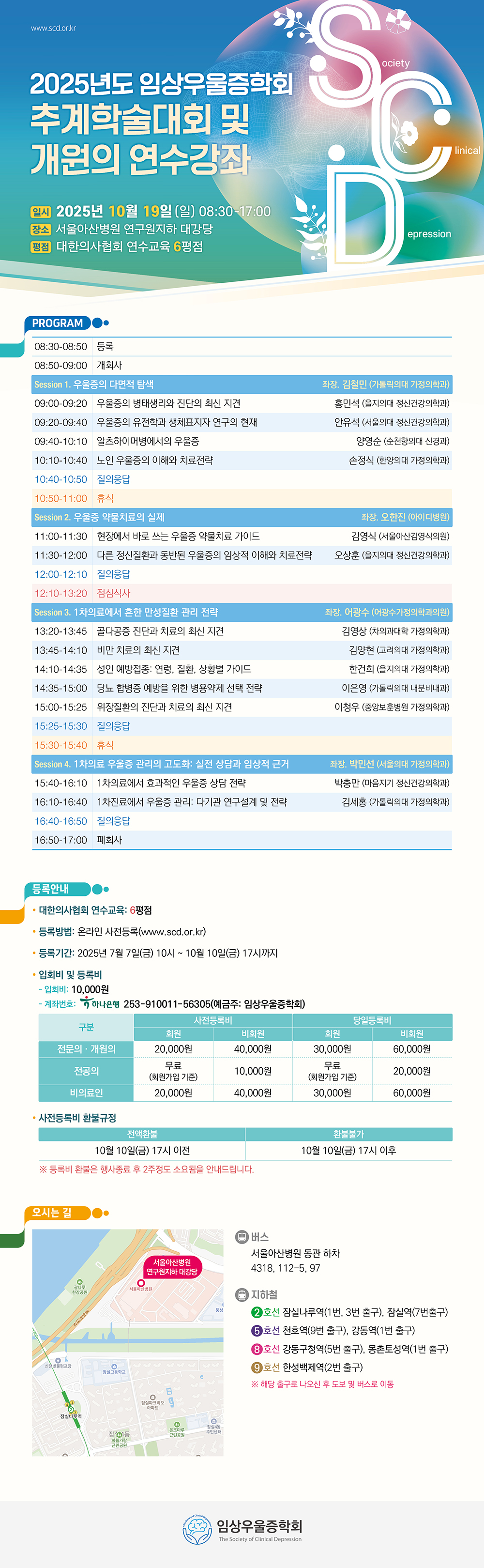 2025년 임상우울증학회 추계학술대회 및 연수강좌 프로그램